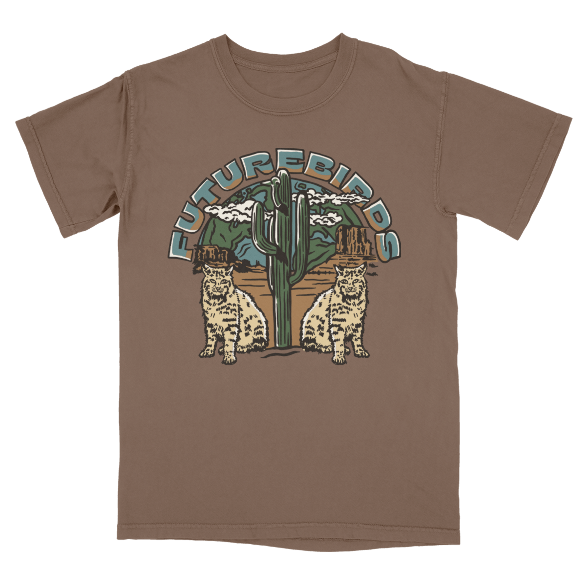 Futurebirds Cactus Tee in "espresso" with front print only.